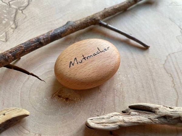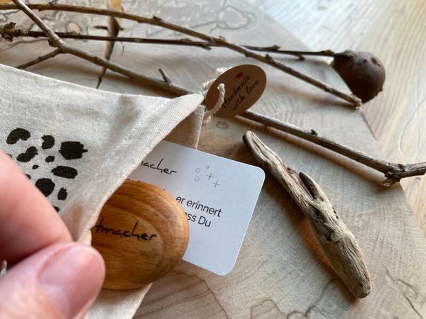 Egal ob als Geschenk für ein Kind, als liebevolle Geste oder als kleiner Begleiter in schwierigen Momenten — die handgefertigten Handschmeichler verzaubern mit der Schönheit ihrer Brandmalerei. In dem passenden Baumwollbeutel kannst Du sie ideal verschenken.