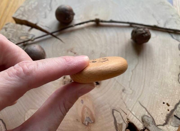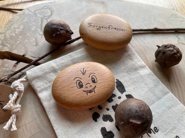 Egal ob als Geschenk für ein Kind, als liebevolle Geste oder als kleiner Begleiter in schwierigen Momenten — die handgefertigten Handschmeichler verzaubern mit der Schönheit ihrer Brandmalerei. In dem passenden Baumwollbeutel kannst Du sie ideal verschenken.