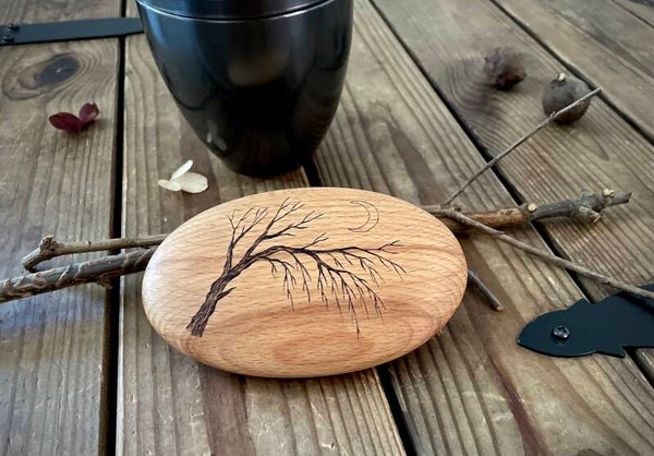 In der gleichen aufwändigen Handarbeit gefertigt wie meine Handschmeichler — von Hand geschliffen, gebrannt und liebevoll veredelt — schenken die Trauersteine eine warme, natürliche Ausstrahlung.