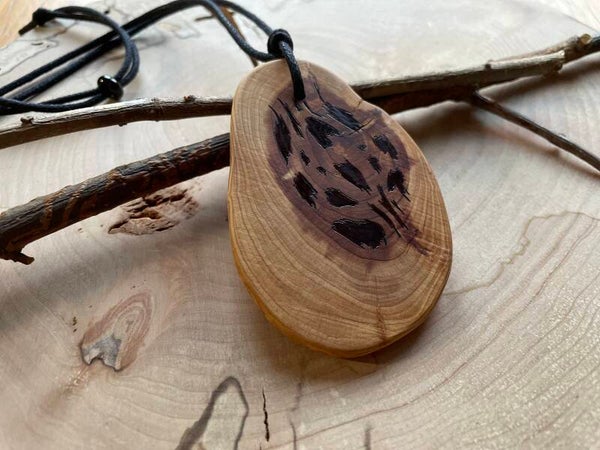 Die Rückseite bleibt ungebrannt – so kannst Du den Anhänger je nach Stimmung mit oder ohne Brandmalerei tragen.