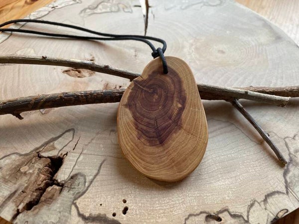 - Handgefertigter Anhänger aus Wacholderholz, ca. 8 x 5,5 cm